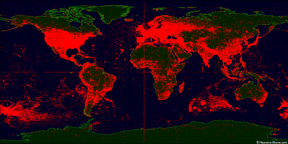 This map shows the geographical distribution of visitors to Heavens-Above over the last 30 days. The locations are obtained from the latitude and longitude which are specified by the user.